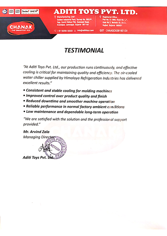 After installing our air-cooled chiller, Aditi Toys achieved: